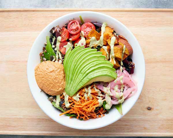 Bowls, sides, and plates catering to a wide variety of diets and restrictions from Paleo to Whole30, low-carb, nut-free, Vegan, etc. GF beer, natural wine & ‘hard’ kombucha. Butter coffee uses local pastured jersey cow butter.